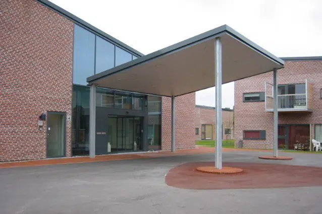 Plejehjemmet består af boenheder placeret rundt om en centerbygning.
