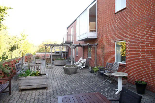 Velkommen til Munkensdam. Plejehjemmet er beliggende lige uden for centrum af Kolding. Det ligger lidt højt, så lejlighederne der alle ligger på 1. og 2. etage har udsigt over store dele af byen.