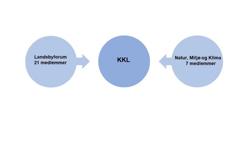 KKL er sammensat af medlemmerne af Natur, Miljø og Klima samt 21 repræsentanter fra Landsbyforum (LF).