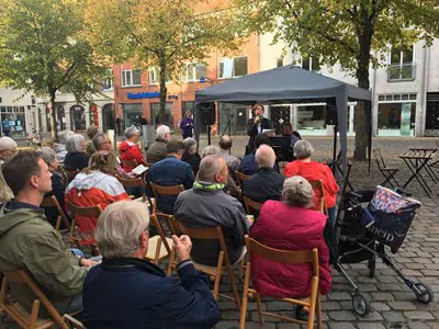 | 24. september 15:00 - 18:30 16:00 - 17:00 | Foredrag om foreningsarbejdet + Debat med byens politikere Recovery Bulls og Frivillig Kolding laver oplæg om hvordan man går fra ide til projekt. Efterfølgende inviteres byens politikere på besøg med henblik på debat og dialog (17:15 - 18:30). Fællessang ved Skt. Nicolai og Café Paraplyen Traditionen tro synger vi sammen ved Skt. Nicolai Kirken og Café Paraplyen. Der synger sange fra Højskolesangbogen | Banegårdspladsen 8 Kirketorvet/ v Nicolai Kirke |