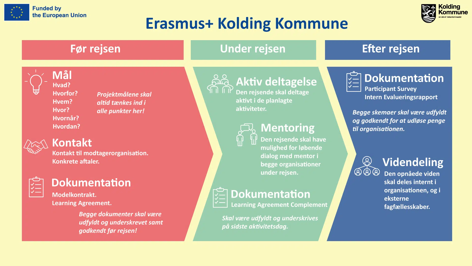 Brug "Rejsebeskrivelse" og "Anmod om Erasmus+ mobility" formularen herover. Denne side opdateres snarest. Du akn orientere dig i PowerPoint fra infomødet d. 30. september 2025 som du finder herunder.