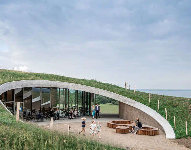 Hvis du vil vide mere om området, kan du kigge forbi besøgscenteret, som er bygget ind i skrænten, så naturen forbliver så uforstyrret som muligt. Med et stort vinduesparti med udsigt over Lillebælt, er det en arkitektonisk portal til stedets historie. Udstillingen i besøgscentret inspirerer til at gå ud i området med en bedre forståelse for stedets kræfter og identitet.