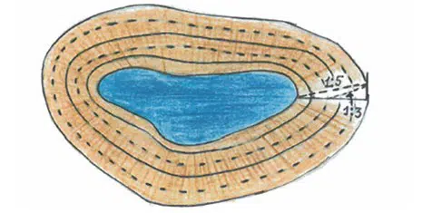 Brinkerne og bunden skal være jævnt skrånende, som hovedregel ikke stejlere end 1:5 - dvs. et fald på 20 cm pr. meter. Hvis bredderne bliver for stejle, varer det længe inden et naturligt plante- og dyreliv indfinder sig, og vandhullet kan blive farligt for de mennesker og dyr som færdes omkring det.