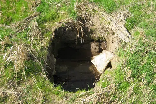 - Er der opstået huller i jorden over ledningen, som kan vise, at rørledningen er faldet sammen?