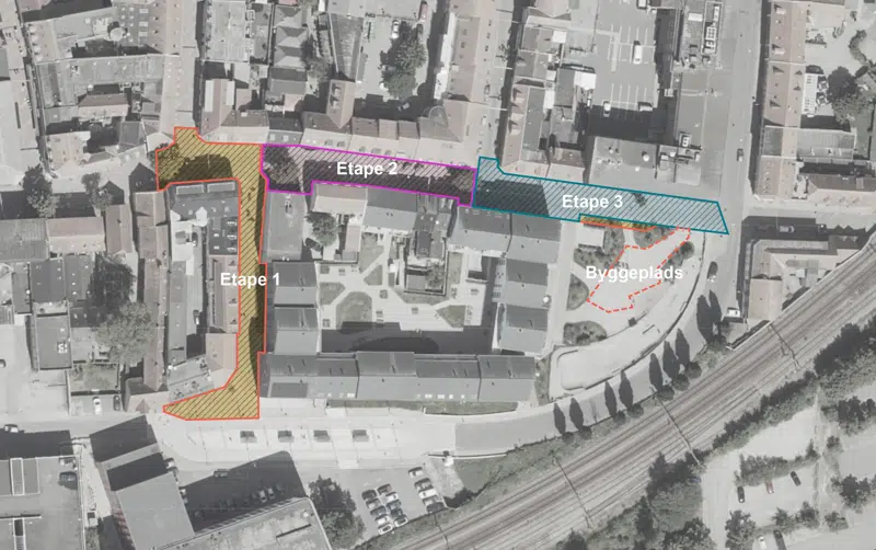 Den helt eksakte tids- og etapeplan for anlæg af projektet er ikke udarbejdet endnu. Men lige så snart de endelige faser er blevet afklaret med de forskellige involverede samarbejdspartnere efter sommerferien, bliver der lavet en opdateret tids- og etapeplan, som vil være tilgængelig her på siden.