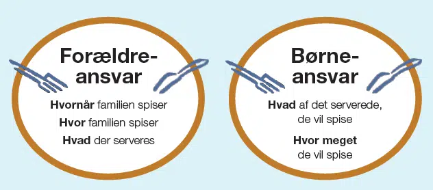 Børn har en naturlig intuition for sult og mæthed, og det er vigtigt at respektere deres signaler. Deres vej til at spise familiens mad kan se forskellig ud, og det er helt naturligt, at appetit og vægt varierer. Se på det store perspektiv og husk, at ansvaret for mad og spisning deles mellem barn og voksen: børn vælger, hvor meget de spiser, og voksne tilbyder varieret, næringsrig mad i trygge rammer.
