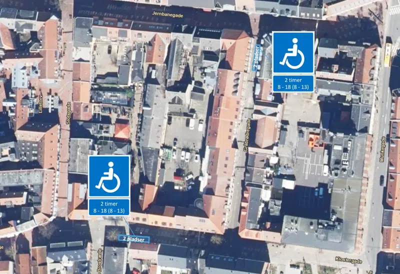 Fra 4. november 2024 vil det kun være tilladt for handicappede at parkerede på de eksisterende handicapparkeringspladser i hhv. Klostergade og Gråbrødregade. Kørsel vil derfor kun være tilladt via Munkegade og Klostergade.