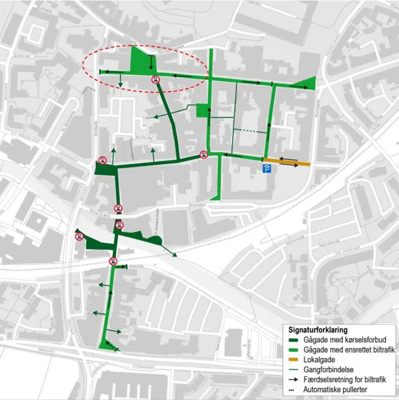 Tirsdag den 1. april har politikerne i udvalget Plan og Teknik vedtaget nogle grundprincipper for en omlægning af trafikken i gågaderne. Politikerne foreslår bl.a., at bilerne skal væk fra en del af gågaderne.