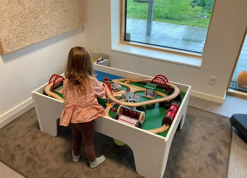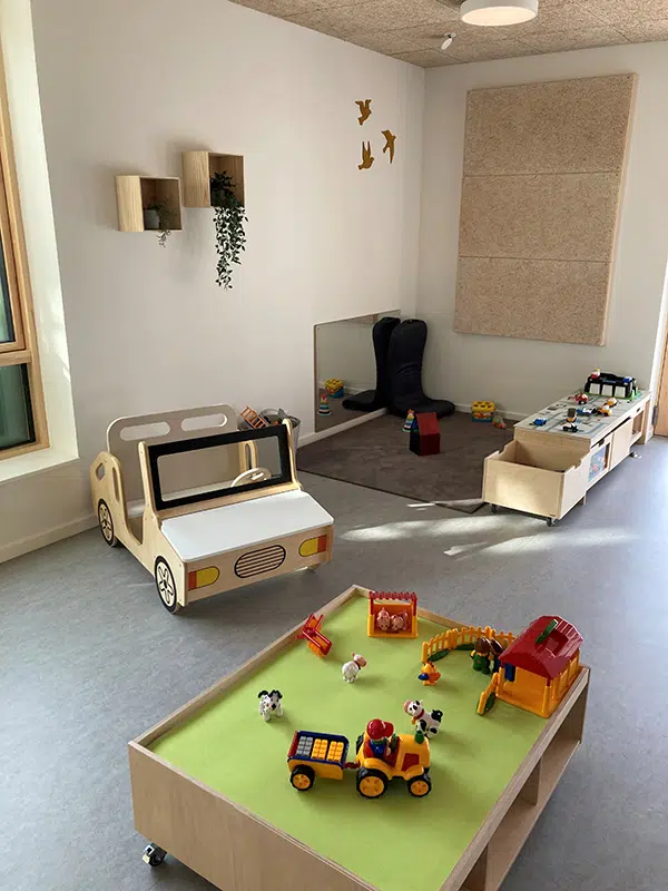 ”I de nye institutioner, vi bygger, har vi fokus på at skabe de bedste rammer for børnene. Rammer, som kan understøtte vores pædagogiske tilgang. Vi nøjes ikke med at gøre, som vi plejer, men vi bygger og indretter med tanke på, at rummene skal kunne bruges til flere funktioner, og de skal indbyde til leg. De skal kunne rumme små og store fællesskaber og give pædagogerne bedre rammer for at facilitere leg, læring og stærke børnefællesskaber,” forklarer dagtilbudschef Merete Westergaard.