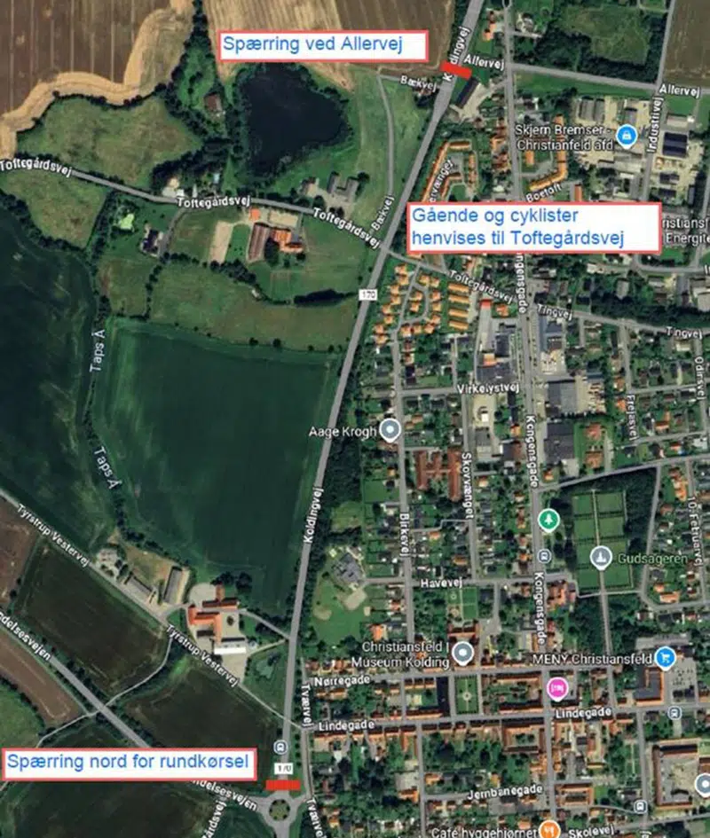 - Cyklister og fodgængere, der plejer at krydse omfartsvejen via broen, henvises til at benytte Toftegårdsvej.
