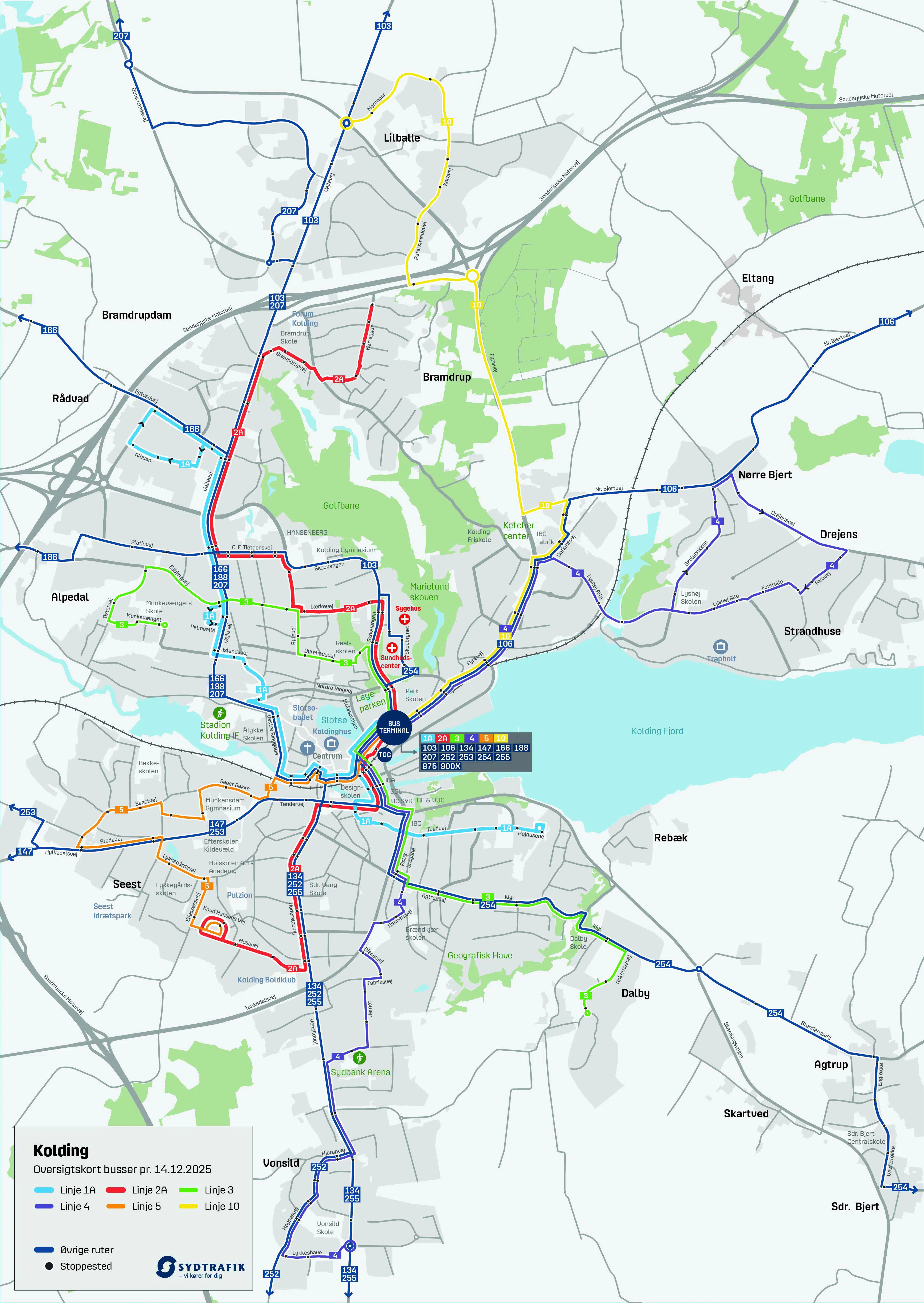 Fra 14. december får bybusserne i Kolding nye ruter og nye numre, når det nye busnet og de nye køreplaner træder i kraft.