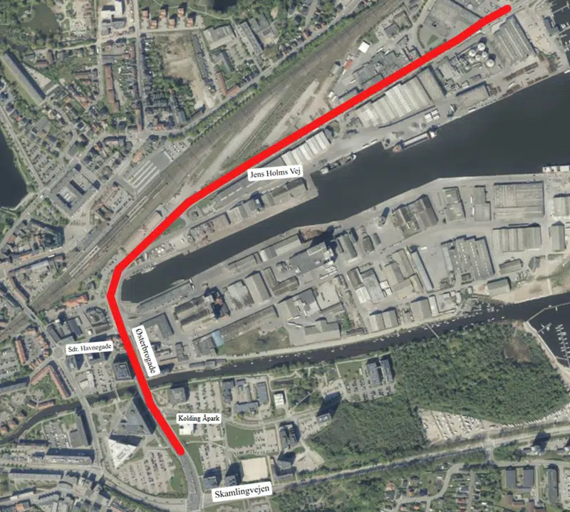 - Højresvingsbanen for biler på Østerbrogade ind til Kolding Åpark bliver midlertidigt forkortet, men der vil stadig være adgang til Kolding Åpark fra Østerbrogade.
